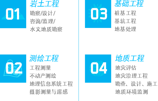 公司通過(guò)產(chǎn)業(yè)結(jié)構(gòu)調(diào)整、業(yè)務(wù)轉(zhuǎn)型升級(jí),實(shí)現(xiàn)跨越式發(fā)展,成為了集巖土工程勘察設(shè)計(jì)、測(cè)繪地理信息工程、地質(zhì)環(huán)境工程、基坑與樁基礎(chǔ)工程四大主業(yè)于一體的綜合性工程技術(shù)公司。作為湖北省工程勘察和基礎(chǔ)施工行業(yè)的排頭兵,現(xiàn)主要從事巖土工程勘察、設(shè)計(jì)、測(cè)試、檢測(cè)、監(jiān)測(cè),工程測(cè)量,不動(dòng)產(chǎn)測(cè)繪,地理信息系統(tǒng)工程,攝影測(cè)量與遙感,地質(zhì)災(zāi)害危險(xiǎn)性評(píng)估與礦產(chǎn)壓覆評(píng)價(jià),地質(zhì)災(zāi)害治理工程勘查、設(shè)計(jì)、施工,城市綜合地質(zhì)調(diào)查,樁基礎(chǔ)工程施工及基坑工程施工,不動(dòng)產(chǎn)登記代理、咨詢(xún)工作及軟件工程開(kāi)發(fā)。