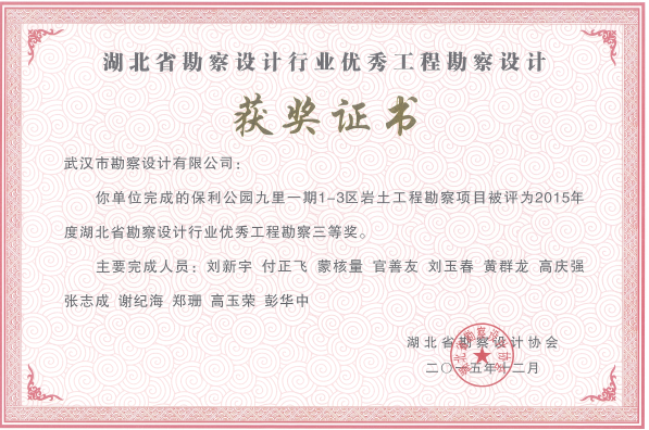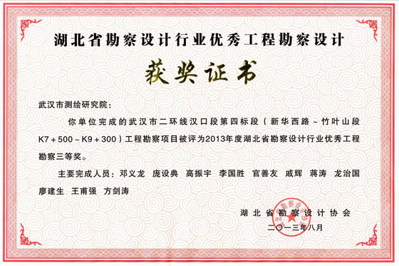 湖北勘察設(shè)計(jì)優(yōu)秀工程勘察三等獎