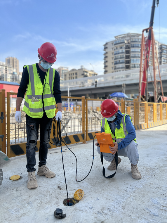 江城的6月忽晴忽雨、高溫潮濕,在石橋站主體車站施工現(xiàn)場,項(xiàng)目部監(jiān)測人員頭頂烈日,腳踏酷暑,一絲不茍地采集監(jiān)測數(shù)據(jù),及時(shí)將現(xiàn)場變形情況報(bào)告反饋至業(yè)主,保障了整體施工進(jìn)度按計(jì)劃安全有序的進(jìn)行。