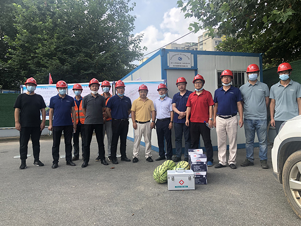 8月11日上午,公司黨總支副書記戚輝、代理副總經(jīng)理熊劍率綜合部、技術(shù)質(zhì)量安全部、巖土工程二公司、測繪工程公司、昌廈公司主要負責(zé)人,先后來到友誼大道快速化改造工程二標段(宏茂巷—三環(huán)線)勘察項目、青山白玉路地形管線測量項目、保利云尚基坑工程項目施工現(xiàn)場,看望慰問正在烈日下工作的一線員工,詳細了解項目進展情況,詢問他們在施工生產(chǎn)、生活等方面遇到的困難和問題,代表公司對一線員工高溫下堅守崗位、辛勞工作的精神表示感謝,并送上了防暑降溫物品,叮囑員工在當前持續(xù)高溫的不利條件下,安全做好工作的同時,注意休息,勞逸結(jié)合,采取有效的防暑措施,安全順利地度過高溫季節(jié),保質(zhì)保量的完成工作。