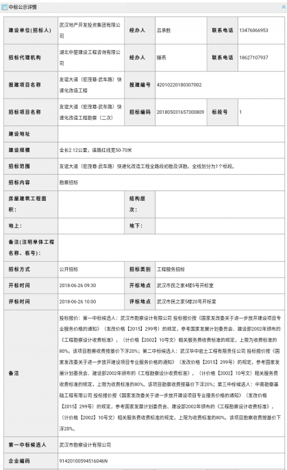 2018年6月26日6月29日,經(jīng)投標(biāo),我公司中標(biāo)友誼大道(宏茂巷~武車(chē)路)快速化改造工程、中山大道(解放公園路黃浦大街)綜合改造工程及姑嫂樹(shù)立交上橋匝道工程勘察項(xiàng)目。我公司承擔(dān)上述項(xiàng)目巖土工程初步、詳細(xì)勘察工作及后續(xù)相關(guān)服務(wù)。預(yù)計(jì)三條道路工程勘察合...