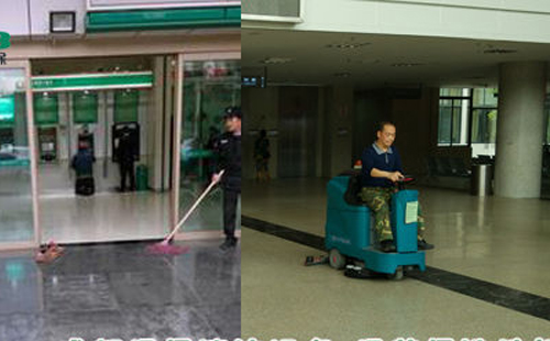 洗地機作為新型的清潔設(shè)備,自動噴水、刷洗地面,污水回收,重點就是這個污水回收作用,是以前所有的清潔工具都不具備的。用洗地機洗過之后的地面,地面不僅很干凈,而且地面是干的,用紙巾擦一下都很干凈。所以綠保覺得異常心酸,第一感覺就是如果這個銀行的地面是用洗地機來清洗的話,這種尷尬讓人心酸的局面就不會出現(xiàn)。